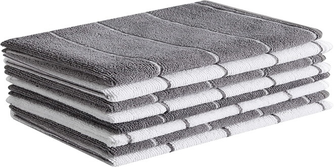 التصميم المخطط باللونين الرمادي والأبيض أنيق ومتين. لا يتعلق الأمر بالأداء الوظيفي فقط، بل يتعلق أيضًا بالجمالية. هذه المناشف ستضفي لمسة من الأناقة والأناقة على مطبخك، سواء علقتها أو وضعتها على طاولة. - قيمة ممتازة مقابل المال (8 قطع في مجموعة واحدة):