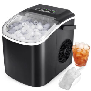 - بإنتاج يصل إلى 26 رطل في 24 ساعة، تلبي هذه الآلة احتياجات الأسرة المتوسطة أو الحفلات الصغيرة بسهولة. لا داعي للقلق من نفاد الثلج، مما يجعلها منافسة قوية في فئة صانعات الثلج المنزلية.